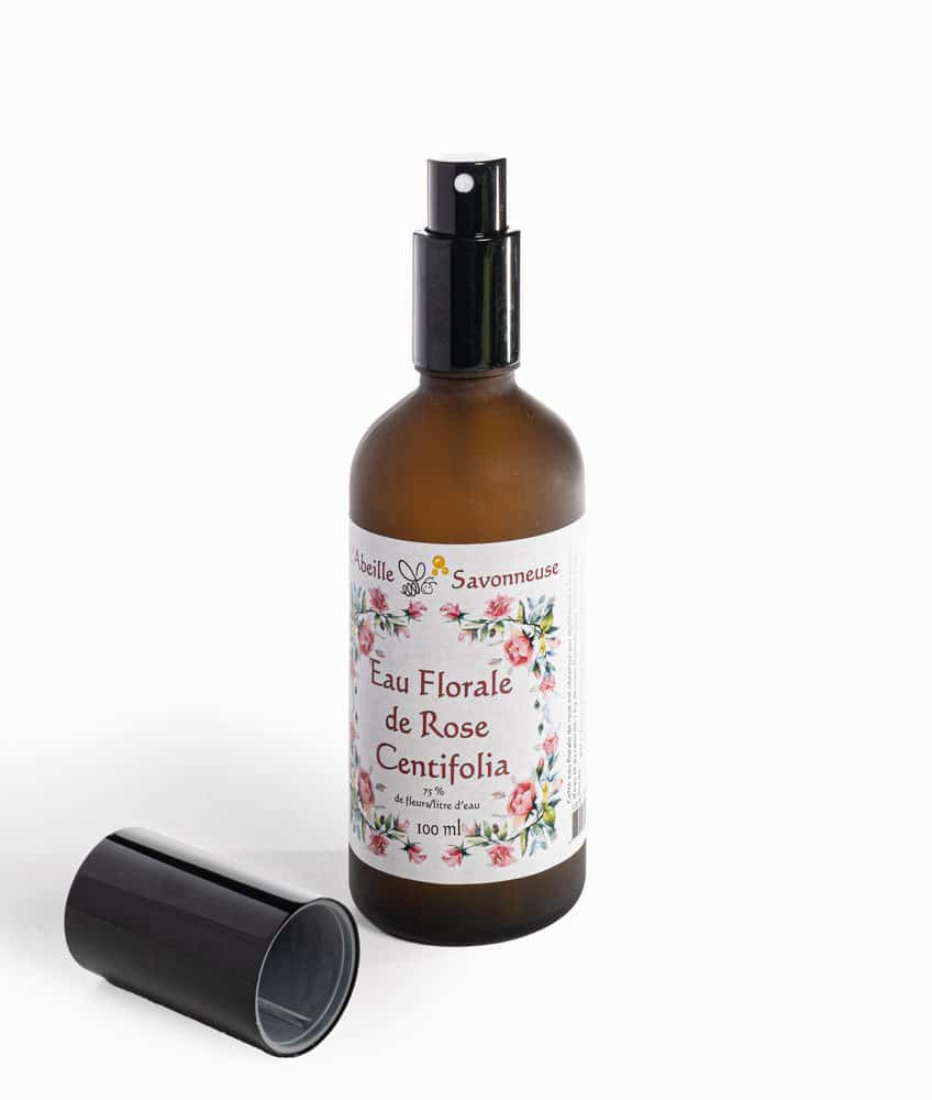 Ingrédients : Obtenue par distillation à la vapeur d’eau et au ratio de 7kg de roses fraîches pour 10L d’eau florale.